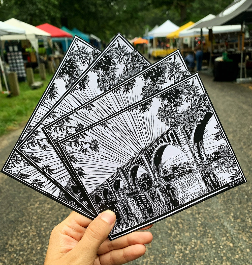 Image was linocut carved, printed, and photographed by me, and printed by local Richmond Printshop- Uptown Color.