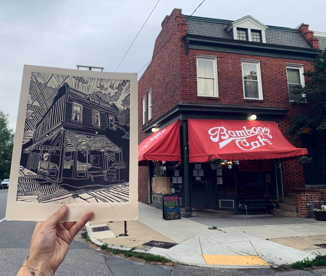 This is an 8.5X11"(ish) print of Bamboo Cafe located in The Fan District of Richmond, VA!