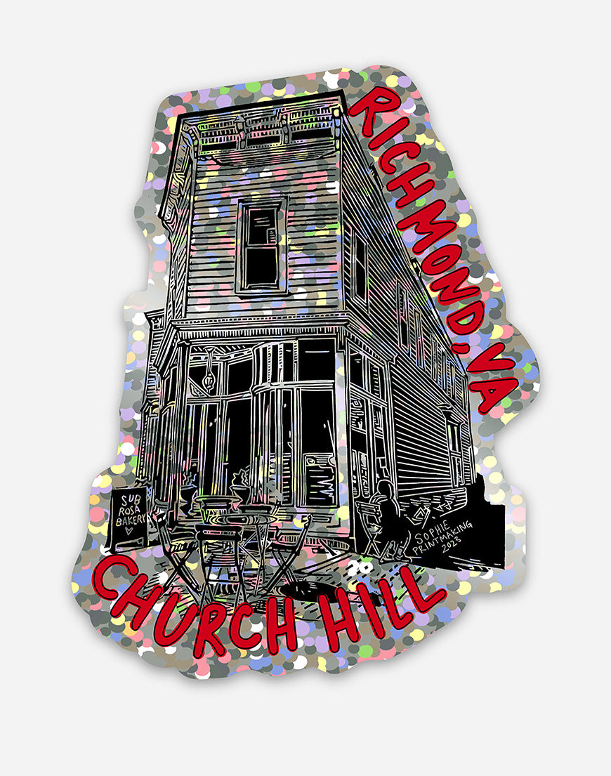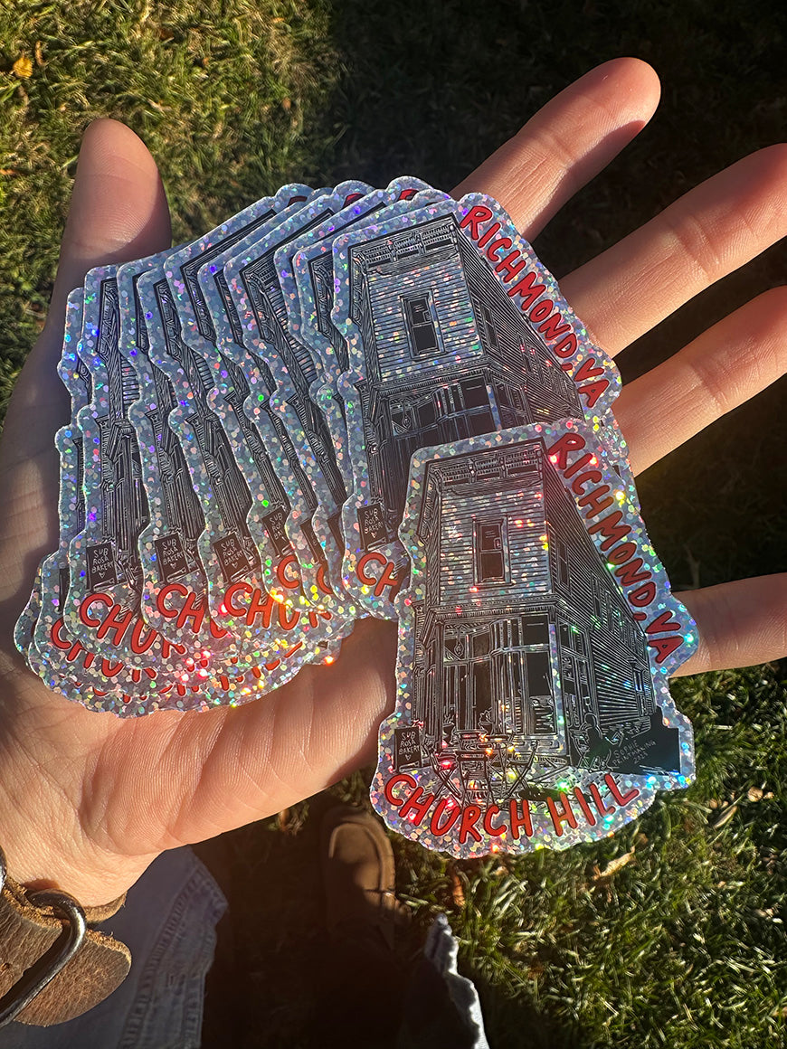 Glitter Stickers featuring Sub Rosa Bakery in the Church Hill Neighborhood of Richmond, VA.
