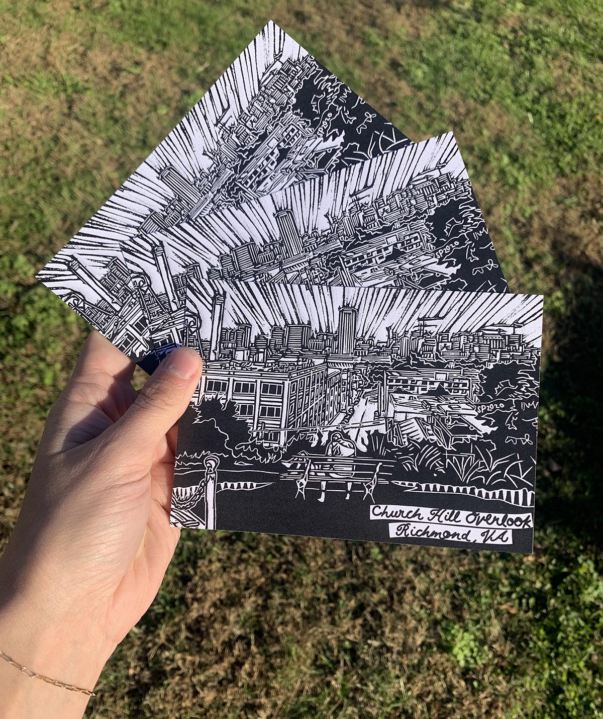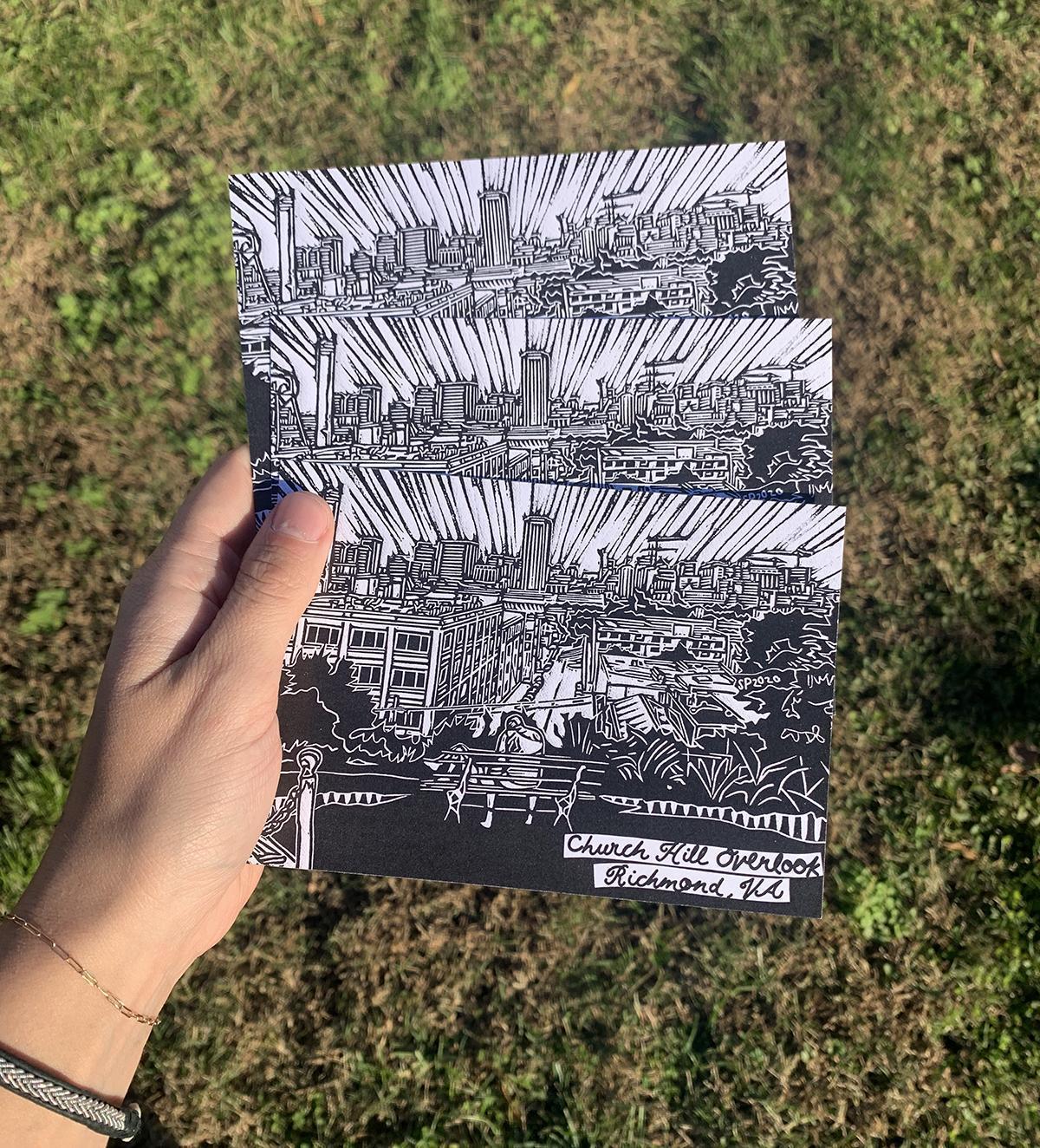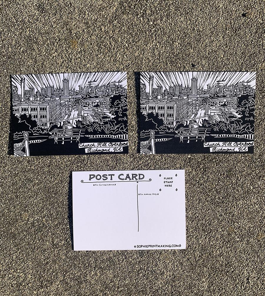 Image was carved by me, and digitally printed by local Richmond Printshop- Uptown Color.