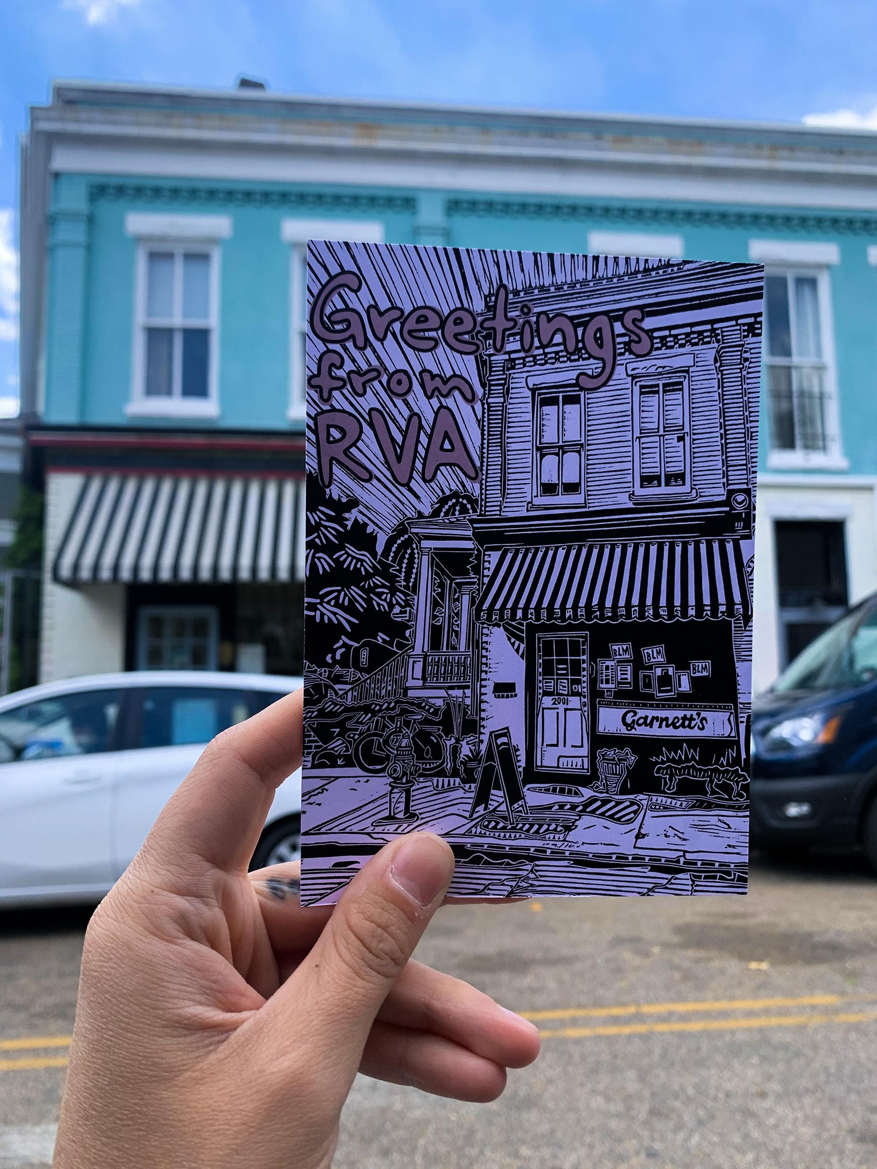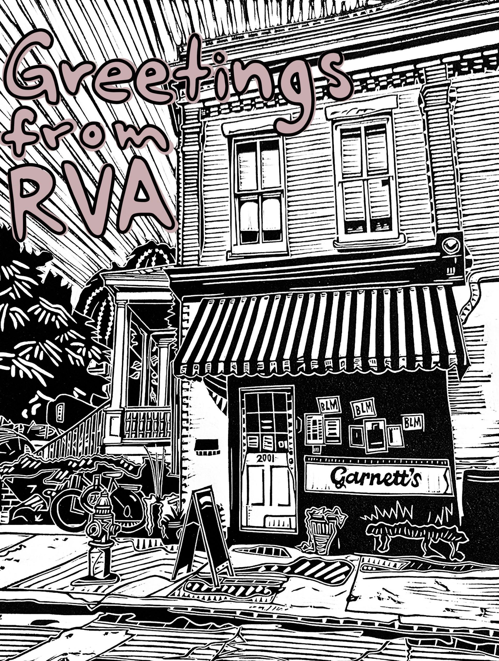 "Greetings from RVA" (Garnett's Cafe on Park Ave)" postcard.