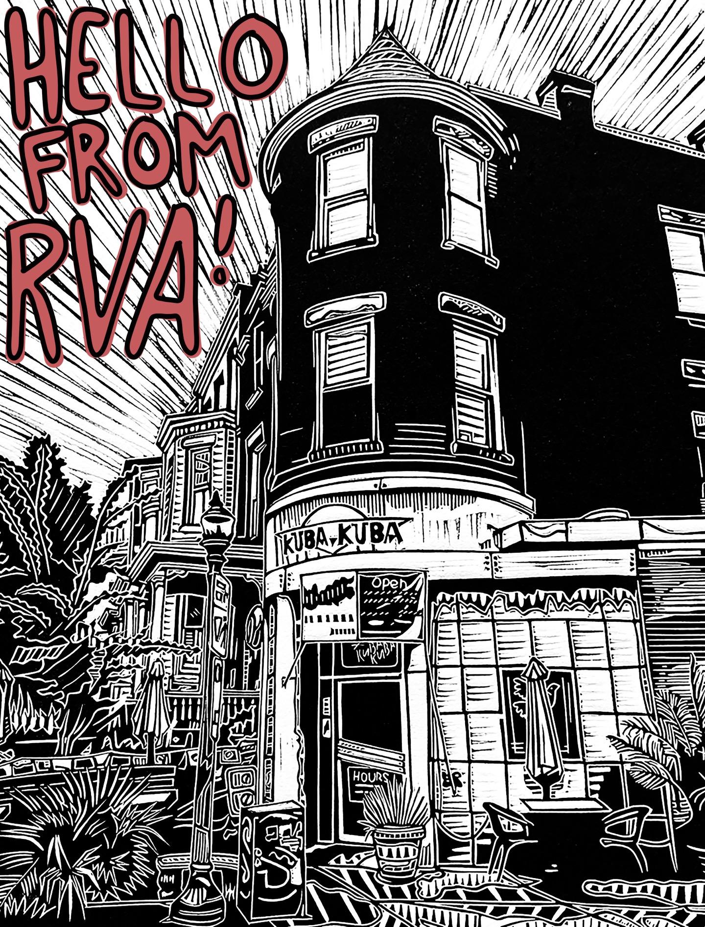 "Hello from RVA! (k.k. restaurant on Park ave)" postcard.