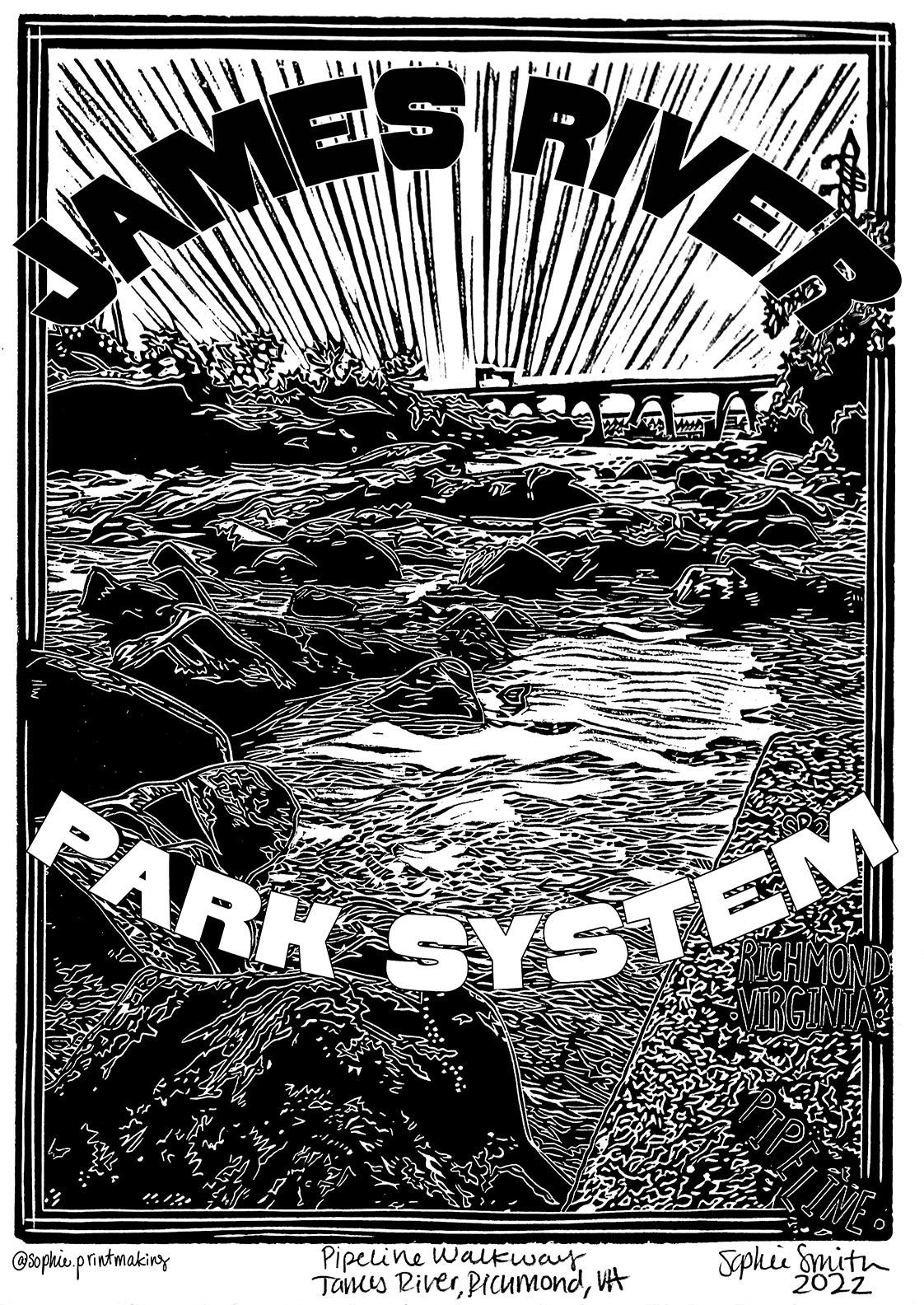 Original image is a linocut carved and printed by me, postcards are digitally printed by local Richmond Printshop- Uptown Color.