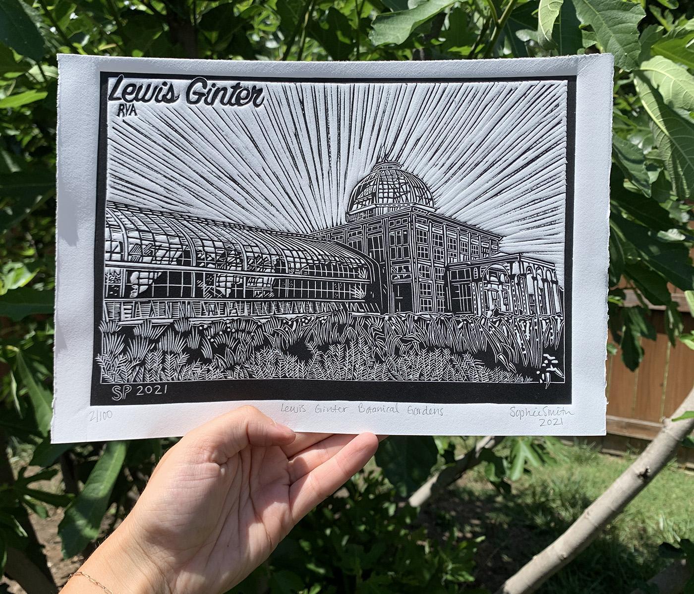 This is a *LIMITED EDITION* 7X10.25″ print of the greenhouse at Lewis Ginter Botanical Gardens. Lewis Ginter is located in the Lakeside neighborhood of Richmond, VA. Printed on Thick Fabriano paper. Titled, signed, and editioned by the artist in pencil. Frame and matte NOT included.
