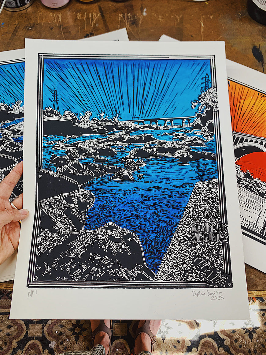 ***Please note that this print is handmade, and not digitally printed, so differences appear in each individual print! Especially in the hand-pulled element of the two toned sky. Each one is unique!***