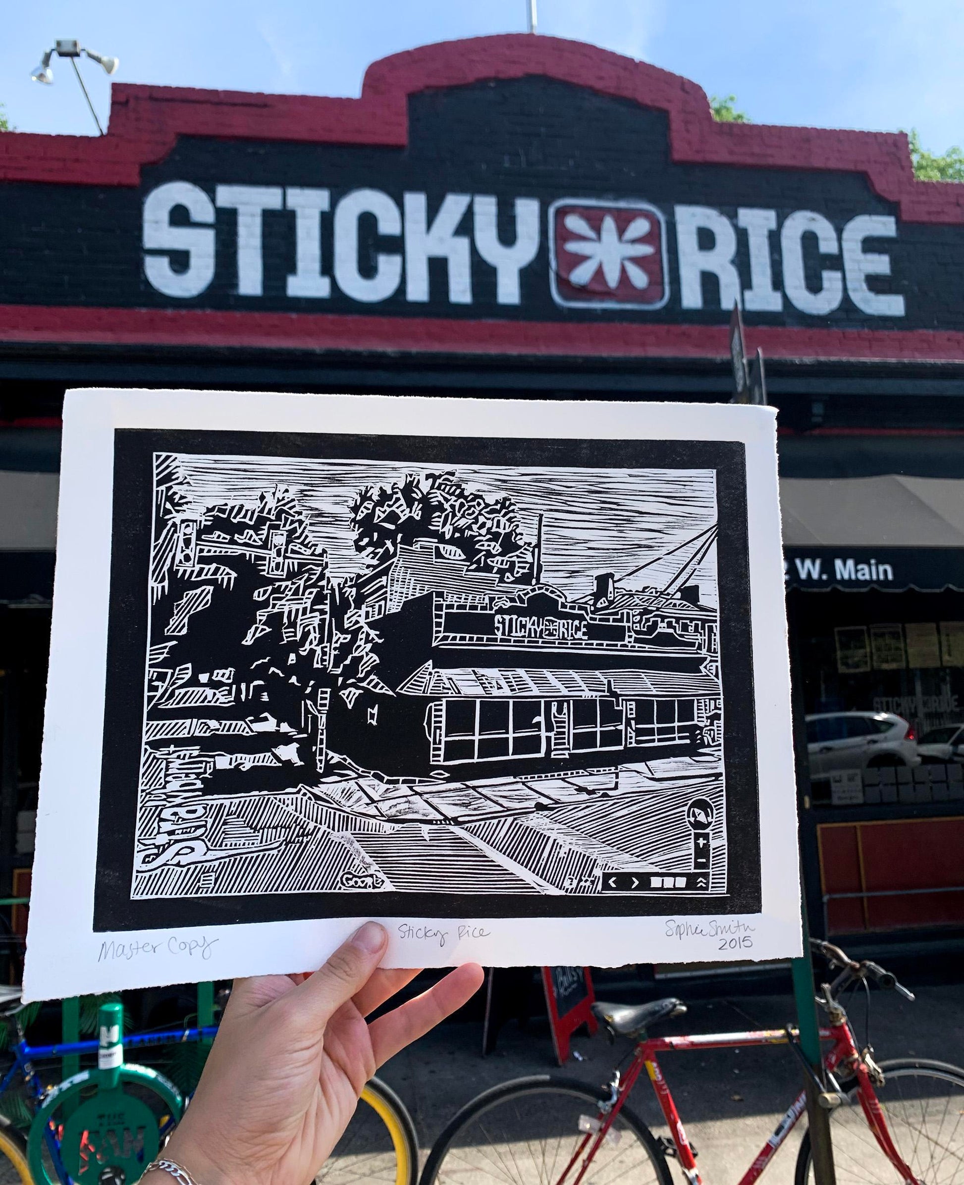 This is a 9X12" print of Sticky Rice, one of my absolute favorite restaurants and bar in The Fan, RVA! (Catch me there & fully vaccinated every Tuesday when karaoke starts back up again) Printed on Thick Fabriano paper. Titled & signed by the artist in pencil. Frame and matte NOT included.