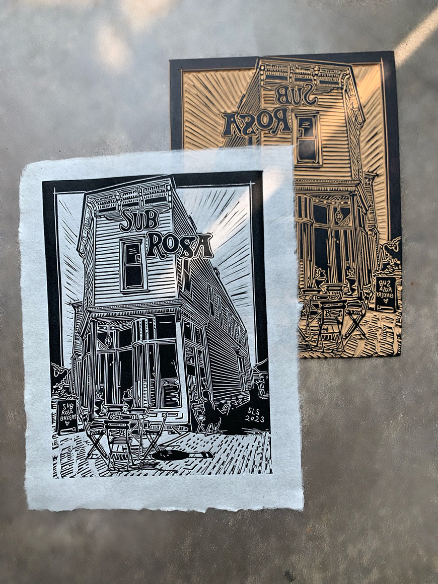 Sub Rosa Bakery Linocut Print (Limited Edition)
